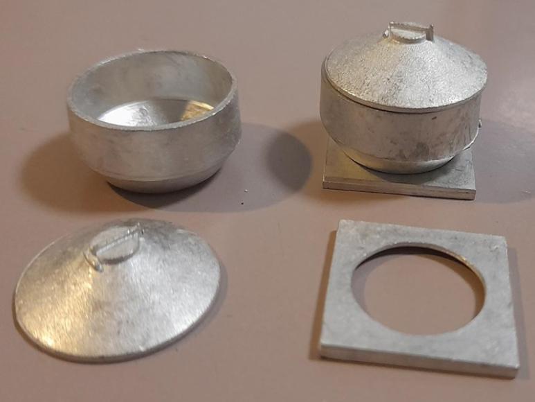 Cement Silos with square base x 2. Pewter bases, silo body and silo top and load/unload valves. |