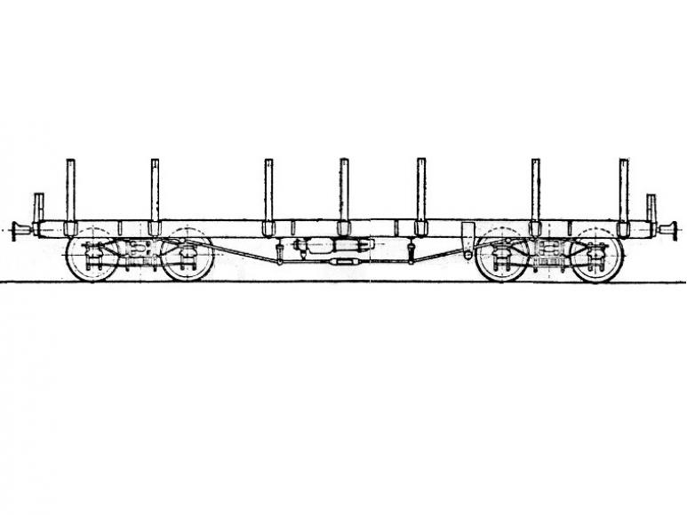 U-3 30' flat deck. 120 wagons built 1906 to 1924. Tare 8-10-0. Various numbers 1,2,49,77,83,236,238-41,243, 290-3, 383-517, 565, 570-684, 768-82, 1144, 1147, 1149-51. Underframes were converted for use with a wide range of other wagon classes. Pewter and brass castings. Northyard bogie sets. |